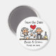 Funny speichern Sie die Dattelmagnete mit einer niedlichen Cartoon Braut und Bräutigam mit einem Champagner Toast! Passen Sie mit den Namen der Braut & Bräutigam, und dem Hochzeitstag in dem Raum zur Verfügung gestellt.