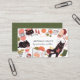Niedliche illustrierte Katzen, Garn und Doodles, Strick- und Strickanleitungen thematische Visitenkarten. Aus Liebe-Overlay auf einem grünen Stich-Muster hinten. Erstellen Sie ein freundliches, skurriles Ambiente mit Sonderanfertigungen und Strickanleitungen.