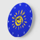 Niedliches Sun & Heart auf Blue Große Wanduhr