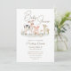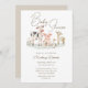 Diese individuelle Baby-Dusche-Einladung besticht durch ein gesundes Landhaus-Thema. Auf dem Bild sehen Sie eine Gruppe von Tieren, die sich auf dem Gras entspannen. Zu den Tieren zählen eine Kuh, ein Huhn, eine Gans, ein Schwein und eine Ziege. Der Titel "Baby Shower" wird in einem eleganten Script-Schriftart über den Tieren gedruckt.