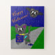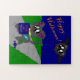 Diese niedliche Halloween-Szene enthält drei hübsche, kleine Halloween-Kritter. Ein niedliches, schwarzes Kätzchen ist mit einer Tasche voll Süßigkeiten vom Trick oder von der Behandlung abgeschnitten. Eine kleine Fledermaus fliegt mit der Katze zusammen und eine Spinne hat ein Bonbon gefunden, das das Kätzchen fallen gelassen hat. Glückliches Halloween wird in einem stilisierten Schriftart in der oberen links Ecke der Szene gezeigt. Alle kleinen Tierfreunde sind in einem niedlichen Cartoon- oder Chibi-Stil gehalten. Das ist ein 30-teiliges Kinderpuzzle.