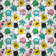 Niedliche kinderfreundliche Monsterbilder machen ein buntes und lustiges Muster auf diesem Stoff. Zu den Bildern gehören lila Monster, schwarze Monster mit vielen Beinen, gelbes Monster mit einem großen rosa Auge, grüne und blaue Monster. . Die Farben sind gelb, rosa, schwarz, grün, aquamarin auf gepunktetem Hintergrund.