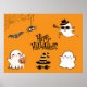 Verwandeln Sie Ihren Raum mit diesem festlich unheimlichen Halloween-Poster-Design! Mit einem zauberhaften Geist, der einen Kürbis hält, einer verspielten Flugmaus, einer schwindenden Spinne mit ihrem zarten Netz und einem fröhlichen, schwebenden Geist mit dem Wort "Boo" daneben, strahlt dieses Design Halloween-Charme aus. Der lebendige "Happy Halloween"-Text, gepaart mit einem whimsical Hexenhut und zwei bunten Süßigkeiten, macht dieses Poster zu einer perfekten Dekoration für Ihre Zuhause, Klassenzimmer, Party oder Büros. Auf hochwertigem Papier mit kühnen, lebhaften Farben bedruckt, bringt es sicher festliche Lebensgefühle mit und bringt jeden in den Halloween-Geist!