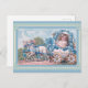 Wünschen Sie Ihrer Familie und Freunden ein frohes Ostern in diesem Frühjahr mit dieser niedlichen Vintagen Postkarte mit einer Retro-Abbildung eines Mädchens in einem Eierkarren, das von einem Lamm gezogen wird!