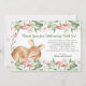Niedliche Woodland Deer Floral Greenery Baby Dusche Dankeschön Karte - Danke an Ihre Lieben mit dieser bezaubernden und niedlichen "Baby Shower Dankeschön Card" mit einem schlafenden Waldhirsch umgeben von blumenreicher Vegetation und Blattwerk. Sämtliche Texte sind so vorbereitet, dass Sie mit Ihrem Baby Duschdetails einfach und schnell personalisieren können.