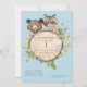 Niedliche Waldtiere Einladung zur Geburtstagsfeier. Neutrale Farben. Blau & Creme. Raccoon, Bär.