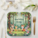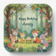 Dieses bezaubernde Design besticht durch Waldtiere in einer malerischen Waldlandschaft mit schönen Blume und Bäumen. Es gibt Füchse, Kaninchen und Hirsche. Die Farbtöne sind schön grün, braun, koral und pfirsichfarben. Man kann es mit einem Namen und Text wie "Happy Birthday" personalisieren.