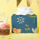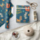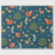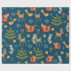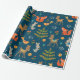 Niedliches Waldland-Kinderzimmer-Motiv mit Hirsch, Füchsen, Hasen, Vögeln und anderen Naturelementen auf dunkelblauem Hintergrund.