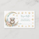 Diese attraktiven und funktionalen Gewinnkarten sind eine reizvolle Ergänzung zu Ihren Einladungen und helfen Ihnen dabei, sich auf die Ankunft der Kleinen vorzubereiten, während Sie Ihre Feier mit einer skurrilen Touch abstimmen. Diese Karten sind in einem charmanten Aquarellstil in sanften Pastellfarben gestaltet und verfügen über eine niedliche Babyeule, die auf einem halbmondförmigen Mond aufgehängt ist und von zarten Blume umgeben ist. Ermuntern Sie Ihre Gäste, Windeln mitzunehmen, um einen Sonderpreis zu gewinnen, der die Veranstaltung lustig und einnehmend macht.