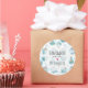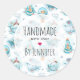 Handgefertigt mit Liebe-Aufklebern mit einem whimsical-Muster mit niedlichen lächelnden Walen glücklich schwimmen im Meer.
