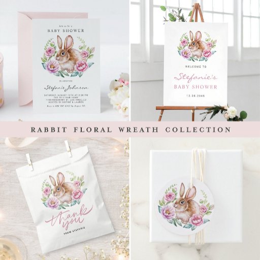 Cute Watercolor Rabbit and Pink Flowers CollectionDesignt von Tessa S