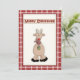 Dieser Spaß, festliche WeihnachtsParty Einladung hat einen karierten Musterhintergrund in Rotem und im Weiß mit Spaß WeihnachtsSchriftart und in einer wunderlichen Illustration von Rudolf das rote Nasenren mit kariertem Halsschal und einem Weihnachtsbaumflitter. Die Rückseite der Einladung hat Text in den Schatten von Rotem und von Grünem und das gleiche kleine Ren wieder. Incoporates einige Grafiken durch launisches Primsy.