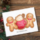 Niedliche Weihnachtspostkarte für die Ferienzeit. Wasserfarbe Lebkuchen Mann und Kakao. Spaß, hübsches Design. Einfach den Text ändern.