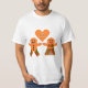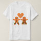 Dieses niedliche Shirt zeigt ein grafisches Bild eines niedlichen Lebkuchenpaares. Der Lebkuchenmann hat grüne und rote Knöpfe und grüne und rote Hosen. Die Lebkuchenfrau hat hübsche Wimpern und trägt einen roten Lippenstift. Sie hat einen grünen und roten Fransenrock und oben. Beide haben ein großes Lächeln. Über dem Paar liegt ein Lebkuchenherz, das ihre Liebe zueinander zeigt. Im Herzen ist eine weiße Schrift, in der steht: "Für jeden gemacht". Das wäre ein schönes Geschenk für ein Paar zu Weihnachten.