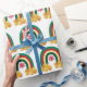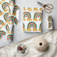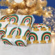 Der saisonale Boho Urlaub Regenbogen aus festlichen Farben und lustigen Schneeflocken. Niedlich für Jung und Alt.