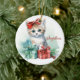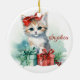 Niedliches Weihnachtskätzchen mit Geschenken Weihn Keramik Ornament