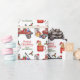 Auf diesem Holiday Packpapier sind drei wunderschöne Kätzchen im lustigen Muster enthalten. Ein Kätzchen trägt eine Weihnachtsmannmütze und sitzt in einer roten Tasse; eines sitzt neben hell verpackten Geschenkpaketen, und das kleinste Tischkätzchen trägt einen roten Bogen und fährt in einem Wagen. Roter Text sagt "Frohe Weihnachten". Ihre benutzerdefinierte Signatur ist in zwei Feldern grün. Die Bilder und der Text werden auf einem weißen Hintergrund platziert. Kinder jeden Alters werden dieses Papier Liebe!