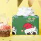 Adorable Tierweihnachtsgeschenk mit einer schönen großen mit Augen Eule in grün und rot mit einer Weihnachtsmannmütze. Ein sehr skurriler Urlaub Kinder verpacken Papier personalisiert mit ihrem Namen.