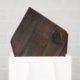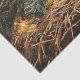 Postkarte mit einem Ölgemälde eines niedlichen Lammes, umgeben von Kiefernzapfen und Kieferngarten mit Weihnachtsbeleuchtung. Der Holzhintergrund verleiht dem Kunstwerk ein rustikales Ambiente.
