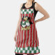 Ihre neue traditionelle Schürze für das Backen von Keksen ist da! Ein niedliches Pinguin-Ehepaar teilt sich eine Urlaubsumarmung auf dem festlichen Hintergrund roter, grüner und weißer Streifen und quadratischer Karos. Es ist ein süßes Geschenk für jedes liebende Paar von Neuvermählten bis zu Großeltern.
