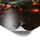 Foto-Druck mit einer digitalen Ölmalerei eines niedlichen Schweins, umgeben von Kiefernzapfen und Kieferngarten mit Weihnachtsbeleuchtung. Der Holzhintergrund verleiht dem Kunstwerk ein rustikales Ambiente.
