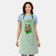 Diese Schürze ist ein strukturiertes hellgrün mit einem niedlichen Weihnachtsskelett, das rote und grüne Ornamente mit einer Weihnachtsmannmütze in einer lebendigen, grünen und roten Spritzer-Form trägt. Passen Sie Ihren Text mit der Vorlage an.