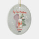 Niedliches Baby zuerst weiße Kaninchen Weihnachten und Weihnachtsbaum Keramik Ornament. Ein wunderbares Sake-Geschenk für die 1. Weihnachtszeit Ihres Babys. Personalisieren Sie es mit den Informationen und Daten Ihres Babys.