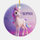 Niedliches weißes Einhorn mit rosa und blauem Mane Keramik Ornament