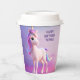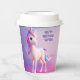 Niedliches weißes Einhorn mit rosa und blauem Mane Pappbecher