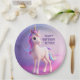 Niedliches weißes Einhorn mit rosa und blauem Mane Pappteller