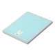 Niedliches weißes Kaninchen und weiße Blume auf dem helltürkisblauen Notepad. Text kann personalisiert sein.
