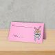 Diese gefaltete stehende Platzkarte für Ihre Party, Veranstaltungen und Hochzeiten ist lebhaft rosa mit einem niedlichen, weißen Hasen, das einen Daumen auf dem Schild gibt und eine schwarze Bogen-Krawatte trägt. Passen Sie den Namen und die Tischnummer sowie den Text auf der Rückseite mit den Vorlagen an.