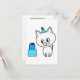 Niedliches weißes Kätzchen in einem blauen Einladung