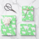 Niedliches weißes Katzenmuster, grüner Hintergrund Geschenkpapier Set