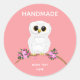 Niedliches weißes Owl auf hellrosa handgefertigt Runder Aufkleber