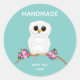 Niedliches weißes Owl auf leicht Aquamarin handgef Runder Aufkleber