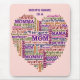 Dieses ursprüngliche Wortkunst-/-typographieherz kennzeichnet Arbeitsbeschreibung einer Mutter. Sowie das Einschließen von Wörtern mögen Sie "Mamma, Mutter, Mutter, Mama, Mama," usw., es einschließt auch alle Arbeiten, die Mütter erledigen, wie "Lehrer, Doktor, Therapeut, Diplomat, Chef, Koch, Richter, Mentor, Storyteller, Trainer" und einschließt sogar einige lustige Jobs wie "Feuerwehrmann, Spion, Bohrgerätsergeant." Die Wörter sind in den hellen Farben und verschiedenen im Schriftart, ganz angepasst zusammen eins nach dem anderen, eine Herzform zu bilden. Dieses macht ein süßes mousepad der Tag der Mutter.