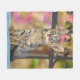 Niedliches Young Tabby Kitten mit blauen Augen in Fleecedecke