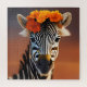 Niedliche schwarz-weiße Zebra mit einem Halo orangefarbener Blume im Haar. Generated Art von minx267
