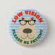 Niedliche Illustration der tragenden Gläser eines Labrador-Retrievers, diese Zucht ist durch Leute häufig benutzt, die blind oder sehbehindert sind. Gebogener Text liest: "Niedrige Vision, ist bitte geduldig"