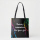 Niemand erinnert sich an das gute Mädchen. Sei du. Sei zäh! Sei stark. Viel Spaß! Breche die Regeln! Farbenfrohe Spritzer (herausnehmbar), mit weißem Text auf schwarz machen eine moderne Tasche, die wirklich eine Aussage macht. Sie können die gewünschte Farbe für den Hintergrund (hier in schwarz dargestellt) und den Text auswählen. Sowohl der Front- als auch der Back-Text sind vollständig anpassbar.