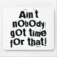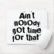 Ein lustiges Slogan-Textdesign-Mousepad mit der Phrase Ain't Niemand Got Zeit dafür. Fügen Sie zusätzlichen Text hinzu, um diesem Design eine persönliche Touch zu geben.