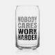 Lassen Sie Ihren Wunsch nach Motivation mit unserem "Niemand kümmert sich, Arbeit härter" bedrängten Text trinken Glas. Das ist nicht nur ein Glas; es ist eine tägliche Erinnerung, sich auf die Ziele der Fitness bleibe. Der raue, bedrückte Text fügt eine Touch Stil hinzu, während die kraftvolle Botschaft Sie dazu ermutigt, härter zu drängen. Ob Sie nach einem Training Hydrieren oder ein erfrischendes Getränk genießen, lass dieses Glas als ein Symbol für Ihre Hingabe zu Fitness und harter Arbeit.