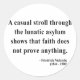"Ein lässiger Spaziergang durch das wahnsinnige Asyl zeigt, dass der Glaube nichts beweist" - Friedrich Nietzsche.