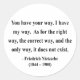 "Du hast den Weg frei. Ich habe meinen Weg. Was den richtigen Weg, den richtigen Weg und den einzigen Weg angeht, gibt es ihn nicht" - Friedrich Nietzsche.