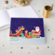 Versenden Sie Feriengrüße mit diesem zeitgenössischen Bild des Weihnachtsmannes, seines Schlittens und seiner Rentiere.
