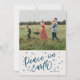 Die Weihnachtskarte "Weltfrieden Lettering Foto Holiday Card" zeichnet sich durch die Wärme und Aufrichtigkeit der Urlaubssaison aus. Mit seiner sanften, handgeschriebenen Schrift nimmt der Begriff "Weltfrieden" die Karte in einem lässigen, aber eleganten Blau auf, was ein Gefühl von Komfort und Nähe hervorruft. Der handgeschriebene Stil fühlt sich persönlich an, als würde er von einem geliebten Menschen gepflegt, was die intime Verbindung dieser Saison noch verstärkt. Der weiche beige Hintergrund ergänzt die marineblaue Schrift und schafft eine gemütliche und einladende Atmosphäre. Dieses Farbgleichgewicht ermöglicht es dem Foto der Familie, sich wunderbar zu erweisen und es zum Herzstück des Designs zu machen. Die Einfachheit der Anordnung zeichne die Aufmerksamkeit auf die Botschaft der Ruhe und Zusammengehörigkeit, während der handgeschriebene Stil einen niedlichen, authentischen Charme verleiht, der den Familien gefällt, die die herzliche Tradition schätzen. Diese Karte ist nicht nur ein Gruß, sie ist ein warmer Umarmung, der über die Meilen verteilt ist. Für diejenigen, die während der Ferien eine Botschaft der Liebe, des Friedens und der Einheit aussenden wollen, schwingt diese Fotokarte tief ein und erfasst das Wesentliche dessen, was es bedeutet, sich verbunden zu fühlen, selbst wenn sie auseinanderklafft.