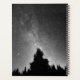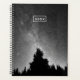 Dieses Schwarz-Weiß-Foto bietet einen Nachthimmel über dem Wald.