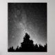 Dieses Schwarz-Weiß-Foto bietet einen Nachthimmel über dem Wald.