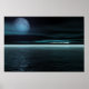 Nachthimmel über dem Ozean mit einem großen Mond und Insel.